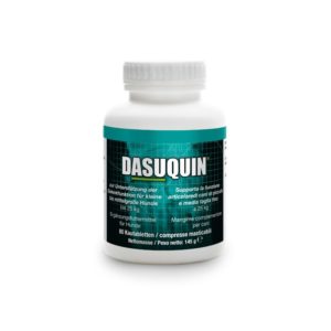 Dasuquin si presenta come una speciale formula per il supporto alle articolazioni del cane più fragili. Combina in modo sinergico il Glucosamina Cloridrato e il Solfato di Condroitina con l’estratto di tè verde deteinato e l’ASU (Avocado/Soia Insaponificabili). Questa combinazione unica fornisce proprietà anti-infiammatorie, anabolizzanti e anti-cataboliche che contribuiscono a preservare la matrice cartilaginea. Le compresse masticabili facilitano l’assunzione.
